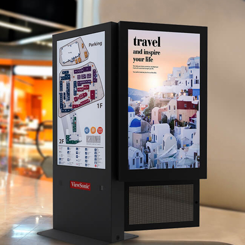 Our HD or Ultra HD 4K LCD displays can be single or double-sided, with individual panel dimensions from 10 to 120". They are fully IP rated, with internal climate control, and can also incorporate wayfinding and beacon technology.
